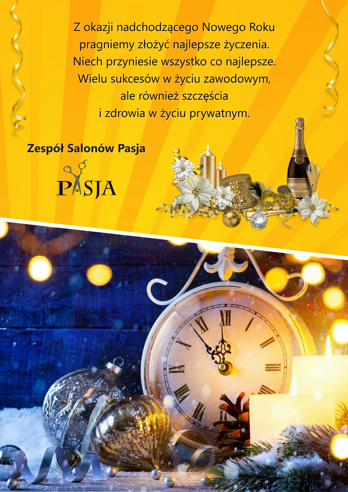 Z okazji nadchodzącego Nowego Roku pragniemy złożyć najlepsze życzenia. Niech przyniesie wszystko co najlepsze. Wielu sukcesów w życiu zawodowym, ale również szczęścia i zdrowia w życiu prywatnym.